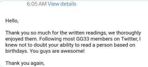 NOTE: Once the payment is made for GG33 Numerology Written Readings, please DM @AK33Astrology on Twitter with the payment screenshot to proceed.